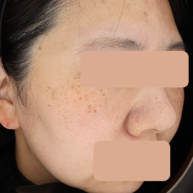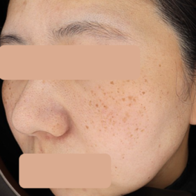 - 양측 광대 부위의 주근깨와 잡티가 현저히 옅어지고 면적이 감소하였습니다.