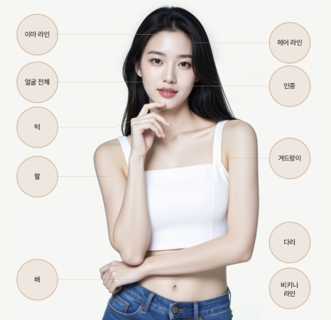 부위별 제모 가능 영역
