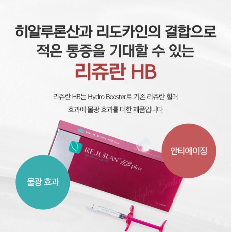 리쥬란 HB (Hydro Booster) : 히알루론산과 리도카인을 추가해 보습력과 진통 완화 효과를 강화한 버전으로, 건조함이 심한 피부에 적합합니다.