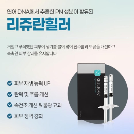 리쥬란 힐러: 피부 재생 능력을 강화하고, 잔주름과 모공 개선에 도움을 줍니다. 시술 후 자연스럽고 촉촉한