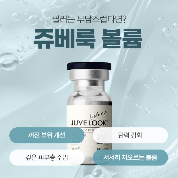 쥬베룩(Juvelook)은 콜라겐 재생을 강력하게 유도하는 스킨부스터로, 속건조·잔주름·모공·탄력 저하뿐 아니라 여드름 흉터 개선에도 효과적입니다. 시술 후 시간이 지날수록 피부 속 콜라겐이 서서히 재구성되기 때문에 점진적이고 자연스러운 피부 탄력 상승을 경험할 수 있습니다. 탄력 저하가 빠르게 진행되는 30~40대에게 특히 추천되는 제품입니다. 또한 쥬베룩 볼륨(Juvelook Volume)은 이름 그대로 자연스러운 볼륨 보충에 특화되어 있으며, 필러처럼 즉각적인 부피감보다는 서서히 차오르는 자연스러운 볼륨과 탄력감을 부여하는 것이 특징입니다. 꺼진 부위나 볼 패임, 얼굴 윤곽 라인을 자연스럽게 보정하는 데 효과적이며 부담감이 덜한 점이 가장 큰 장점입니다.