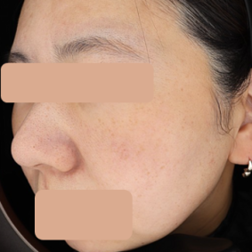 - 양측 광대 부위의 주근깨와 잡티가 현저히 옅어지고 면적이 감소하였습니다.