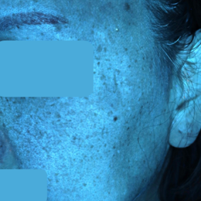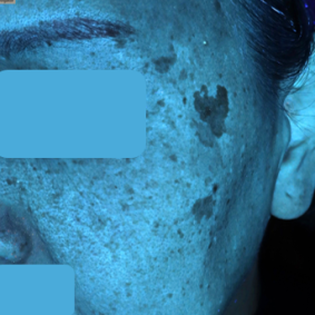 - UV 촬영상에서도 병변 부위의 멜라닌 밀도가 뚜렷하게 높게 나타났습니다.