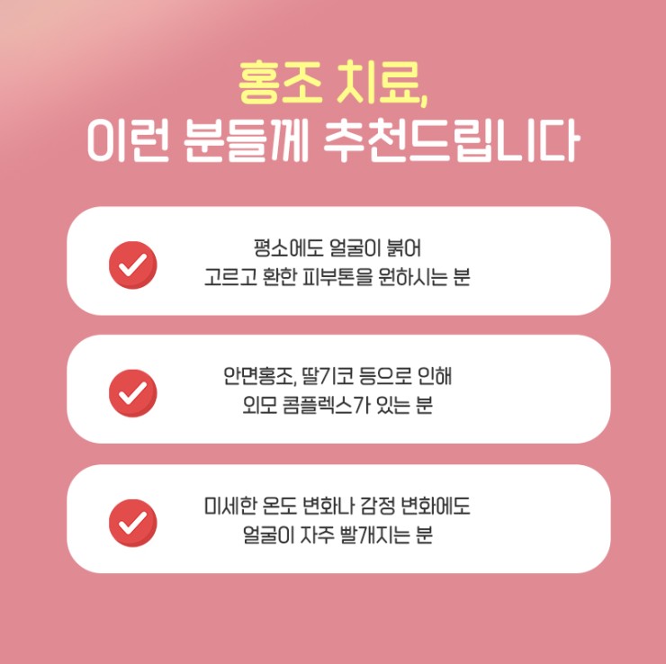 다음과 같은 증상이 반복된다면, 단순한 피부 트러블이 아닌 홍조 치료의