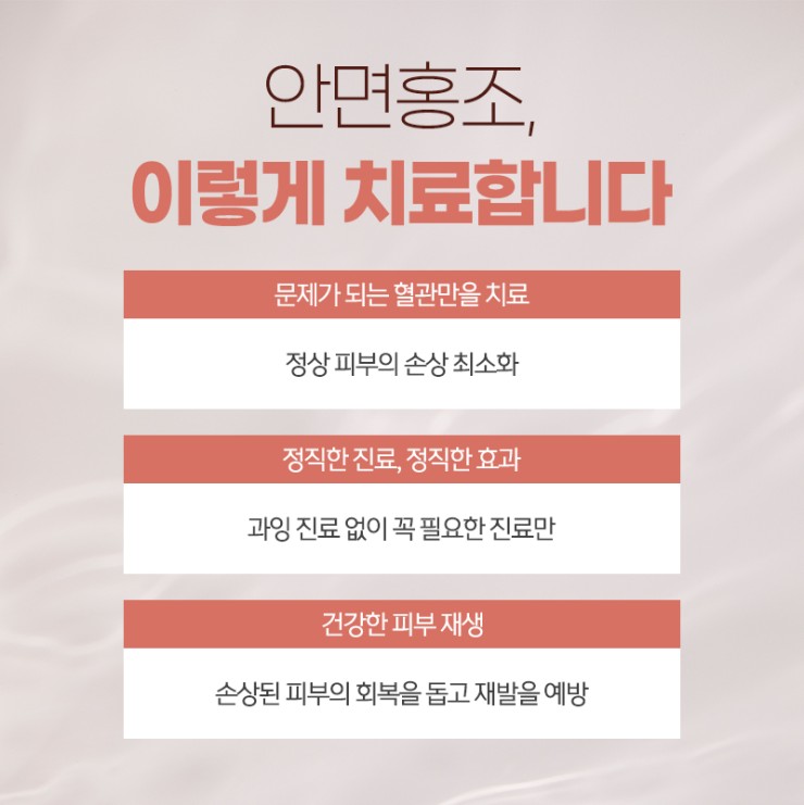 병행해 홍조 재발률을 낮추고, 건강한 피부 톤을 유지할 수 있도록 돕습니다.
