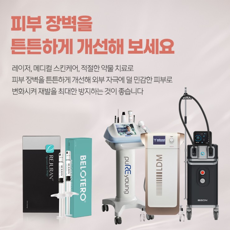 것만으로는 해결되지 않습니다. 정확한 진단을 통해 혈관 상태와 피부 장벽 손상 정도를 구분하고, 개인별 맞춤 치료를 설계해야 합니다.