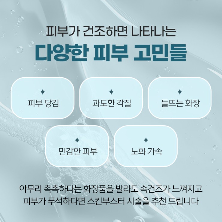 스킨부스터는 다음과 같은 피부 고민을 가진 분들에게 적극 추천됩니다.