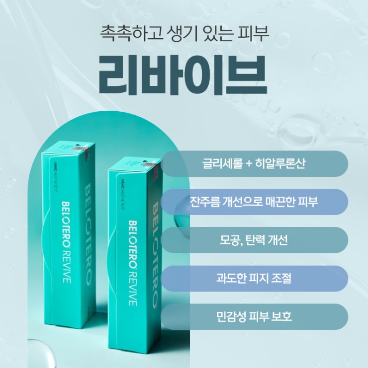 리바이브는 히알루론산(HA)에 글리세롤이 더해진 스킨부스터로, 강력한 보습과 피지 균형 조절에 특화되어 있습니다. 리바이브의 글리세롤은