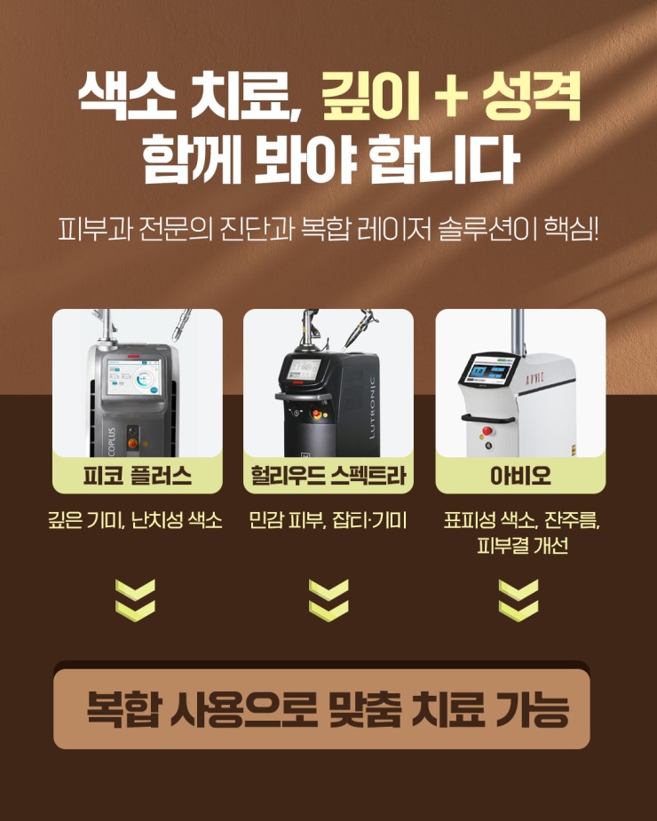 색소 치료의 시작은 반드시 진단입니다. 색소의 깊이, 범위, 분포 양상, 피부 민감도에 따라 치료 방식은 달라집니다. 진단 없이 진행되는 치료는 색소 재발이나 악화로 이어질 수 있어 주의가 필요합니다. 경험 있는 의료진을 통한 피부 상태 평가가 선행되어야만 불필요한 자극을 줄이고 치료 만족도를 높일 수 있습니다.